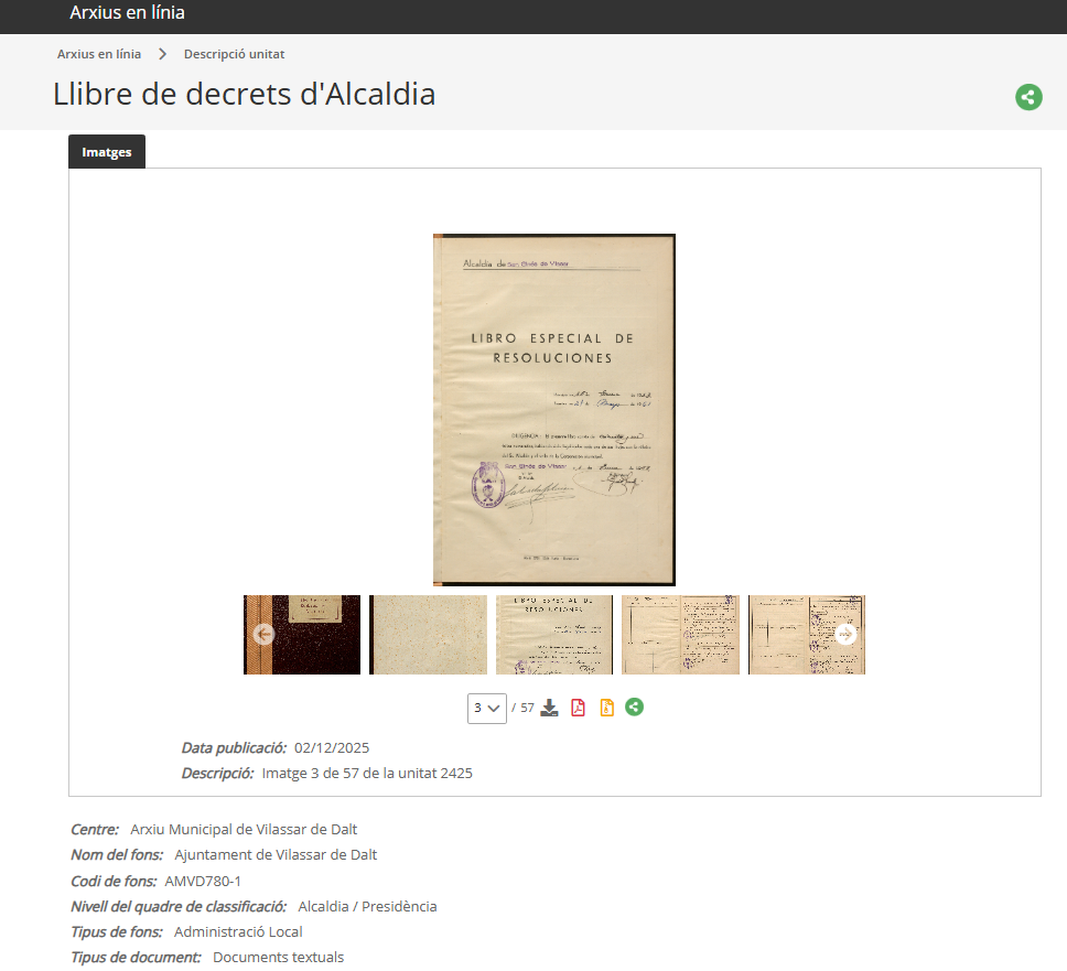Amb aquesta acció es continua amb la tasca iniciada el 2024 amb les actes del Ple i Padrons d’habitants de facilitar a la ciutadania l’accés en línia de la documentació que fins ara només era possible consultar presencialment a l’arxiu municipal.